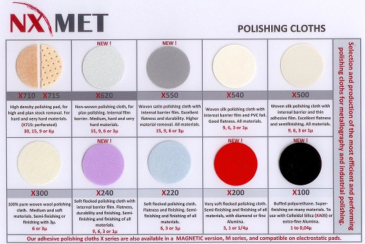 - sukna samoprzylepne – średnice 200, 250 i 300mm, od 1 do 15µm,